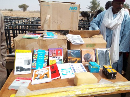 Oltre alla popolazione locale e agli alunni delle due scuole, che lo hanno accolti al loro arrivo nei rispettivi villaggi, c'erano anche un deputato, il direttore della scuola, l'ispettore scolastico e il capo del villaggio. Soumana e queste personalità hanno fatto ognuno un discorso e poi c'è stata la consegna ufficiale del materiale: tavoli, sedie, lavagne, scrivania per il direttore, libri, quaderni, penne e matite.